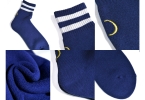 コンセプト通り、毎日でも飽きのない2本ラインのクォーターソックスは、足の甲にロゴ刺しゅう入り。